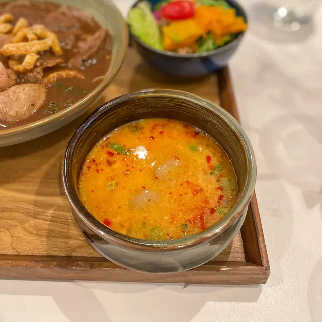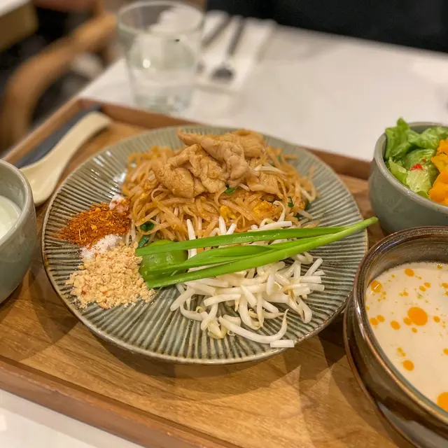 @samsenhk📍Samsen 泰麵石水渠街68號地舖🐮🍜招牌泰式和牛濃湯粉 $158🦐🍝泰式虎蝦炒金邊粉 $158🧋泰式奶茶 $48今日同女朋友收工去食泰國菜,好彩我地大概6點就到,餐廳已經唔少食客😲我地坐咗陣就開始要排隊啦🤣餐廳嘅裝修都幾有風味,有泰式大排檔feel,高樓底裝吊扇,同埋牆身有啲懷舊嘅擺設❤️不過怕熱嘅朋友要趁呢排天氣開始涼去食😋夏天食嘅話會有啲熱🤣湯粉🍜嘅湯底超濃超甜😍和牛🐮都非常嫰😋炒金邊粉🍝都幾有鍋氣🔥虎蝦🦐大大隻又幾多🤤女朋友幾鐘意飲佢地嘅泰式奶茶🧋唔會太甜😆雖然我鐘意飲香濃嘅港式奶茶多啲,但我覺得佢地嘅奶茶都唔錯😁食完飯仲可以去附近嘅合和商場行吓,最近有咖啡市集☕️❤️#bunnytummy_港島#bunnytummy_灣仔#bunnytummy_泰國菜#香港foodie #食好西 #香港美食 #泰國菜 #泰菜 #高質泰菜#泰式奶茶 #padthai #打拋飯 #泰麵#hkfoodblogger#hkfoodie #hkig #香港好去處 #拍拖好去處…查看更多