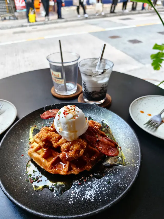 暫時叫咁多食物都無一樣係伏!真係好難得,而且打卡一流,坐喺outdoor環境舒服,好chill♥️排隊都值得一試既cafe!📌大推芝麻牛奶,鍾意食芝麻嘅人一定要叫一定要叫因為個芝麻味好濃厚,溝埋牛奶真係超級好飲,呢個係下次必再reorder之選📌另外個卷卷意粉都勁掛汁,條條卷卷粉都沾有汁係幸福嘅味道🤤鴨胸好味唔油又夠香7分鐘就清碟🤤🤤📌開心果巴斯克蛋糕,再配搭住開心果打碎左係喺上邊,男仔都忍唔住想試🤤…查看更多