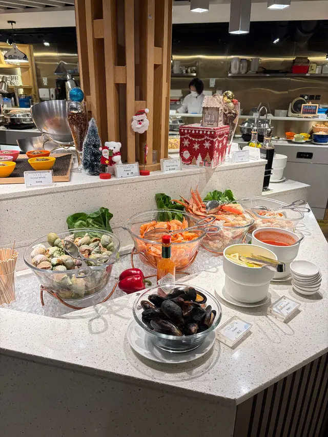 海王盛宴自助晚餐 💵$588/位🕤 晚上6:00-9:30🚌 提供穿梭巴士來往葵芳站📸 打卡位UG層Grazzi Garden戶外花園環境大坐得舒適,都有唔少一家大細黎食👵🏻👨🏻🦳💕 冰鎮海鮮雪花蟹腳、花蟹、蝦、翡翠螺、青口冇雪味❄️ 有鮮味keep住refill👍🏻👍🏻💕 即開新鮮生蠔即叫即開❣️新鮮❣️重蠔味🦪💕冷盤推介煙鴨胸、雜錦凍肉、餅配芝士拼盤💕 刺身吞拿魚、鯛魚、三文魚、馬刀貝、墨魚、赤蝦三文魚吞拿魚💕芝士波士頓龍蝦🦞每枱籌號形式任食,即叫即整❣️芝士味濃,龍蝦肉新鮮彈牙,有驚喜😳💕爐端燒帶子、蝦、青椒,芝士腸、茄子唔會燒到乾哂👍🏻蝦夠鹹香,芝士腸燒到爆汁💕雜錦天婦羅炸蟹棒,炸茄子,炸金菇,炸蓮藕,推介炸蟹棒,內裏有埋啲沙律醬,惹味👍🏻炸金菇就好似食緊薯片咁,好脆口💕 燒原條穀飼肉眼扒牛味濃,醃料調得好惹味💕湯品鮑魚螺片蟲草花燉湯龍蝦湯 💕熟食燒豬助骨:醬汁好香甜,薯仔🥔同豬助骨都入哂味!中式薑蔥炒蟹:炒得好香,但同大排檔食到既一樣星洲黑椒龍蝦鉗:竟然有新加坡菜式!黑椒味重得黎唔辣。💕甜品雪糕朱古力噴泉 棉花糖自製窩夫雪糕🍦CoCoberry、Haagen Dazs 仼食建議雪糕夾窩夫/麵包食,麵包烘完仲完輕脆又熱,夾雪糕,冰火交融😍糕點:蛋花大菜糕明月冰卷、朱古力撻、和菓子、綠茶卷 等水果:西瓜、菠蘿⋯💕飲品汽水、啤酒、橙汁、紅茶、咖啡機…查看更多