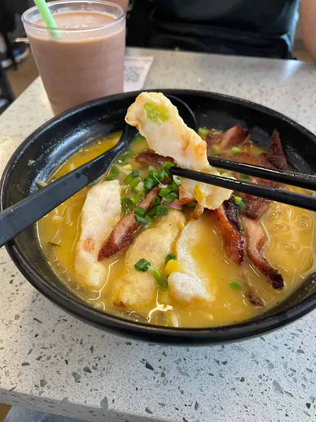 這道海南雞髀餐實在是驚艷雞肉肉質鮮嫩多汁,加上溫泉煮蛋的獨特香氣佢就溫泉蛋係好食,每一口都是滋味十足。搭配上油飯,簡單卻又極具滋味順帶一提,個蔥油撈麵好岩口味肚餓可以食飯,細食都可以食麵但講到最驚喜,