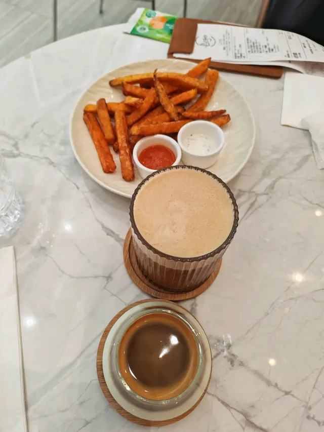 之前嗰間都有同朋友去過幾次,欣賞他們的咖啡香氣,因為我偏向喜歡 nutty 嘅咖啡,佢哋個漢堡同意粉都做得幾好,可惜做唔住。見到又有間新嘅所以特登嚟試吓。呢間咖啡普遍係fruity。朋友叫咗杯 Blackccino , 我叫咗杯 Dirty 。一般去唔同嘅咖啡shop都會係用 nutty 嘅豆,呢間兩杯都上 fruity 豆,仲要偏酸,有點失望。其實Blackccino 咖啡通常會選擇 nutty 的咖啡豆,因為這種風味能與牛奶形成良好的平衡,且能帶出黑咖啡的醇厚感。 係有人偏好fruity 的咖啡豆,但nuttier 的咖啡豆更常被用於製作Blackccino,以達到更和諧的口感。 Dirty這種將濃縮咖啡直接倒入冰牛奶中的咖啡,通常會選擇帶有堅果風味的咖啡豆。 這是因為nutty咖啡豆可以與冰牛奶的柔和形成很好的平衡,比較少用 fruity豆。嘢食頭盤叫炸薯條同炸番薯條,薯條好過老麥少少,番薯條完全比唔上隔離商場食漢堡包嗰間。Main 叫咗個四川蟹肉意粉 + lasagna 。 蟹肉意粉一上枱就聞到一陣腥味,四川味蓋過咗蟹肉味,唔值得呢個價錢。Lasagna 上枱時有有諗過隻碟會唔會暖暖哋,but of course,我期望有點高了,lasagna 沒太大驚喜。甜品加咗個 Tiramisu ,還可以嘅,用咖啡浸 lady finger,但係某個位嘅 lady finger 有點過硬,又有部分好似梳咗氣嘅味,係打卡able嘅靚,但整體唔夠穩定。呢個質素有D貴,peak hour 仲係得75分鐘,而家中環返工晏晝食 Phi 都完全唔覺得奢侈了。…查看更多