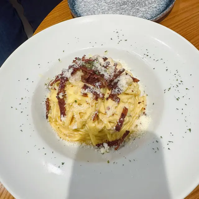 #大食小公主長洲區出動👸🤪 [長洲抵食放鬆Cafe 吉士咖啡店]諗住誤打誤撞入一間長洲嘅Cafe,點知嘢食又抵食又好食👍🚩 卡邦尼意粉$68平時卡邦尼意粉真係食唔少,但係呢個卡邦尼嘅醬汁非常之濃郁☺️☺️而且有兩款嘅煙肉🥓一款係偏鹹口味同埋厚身嘅煙肉粒👍👍另一款嘅煙肉比較脆卜卜撈埋一齊食,非常惹味😝🧡🚩 all day breakfast $88全日早餐就正常份量都足夠最特別嘅係中間撈左一個Yogurt酸酸美味咁樣幾開胃👍🚩煙三文魚滑蛋盒子吐司 $68最出名,就係個吐司炒蛋非常之滑,而且麵包係有烘過,食材都好豐富😍配菜都唔會hea,炒菇同埋沙律都好好食😋🚩孜然粉雞軟骨 $38以為上菜係一粒粒,點知係一串串總共有五串,而且每串都好重孜然粉嘅味道雞軟骨都大大粒都幾抵食大家入開長洲可以一試呢間Cafe坐得幾舒服,而且嘢食都好抵食👍👍👍👍…查看更多