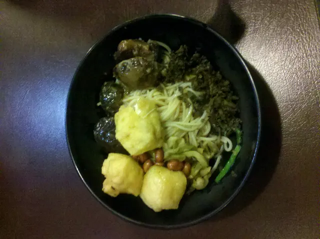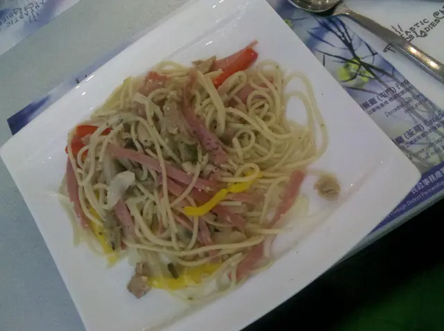 Ordered the garlic spagetti with chicken and ham. It tasted all right. But the fact that the ham was cheap sandwich cold-cuts (sliced into small pieces) really spoiled the meal for me. It was poor quality and tasteless. In fact, a great way to destroy an otherwise fine and acceptable meal:(The dish was richly garlicy, and I did enjoy that part of it. The chicken was great also. Just the rubbish-quality ham....if only there was an option to opt-out of recieving spam-quality meats....or at least advance warning. A great way to rinse the cheap ham taste from my mouth: The lai cha. …查看更多