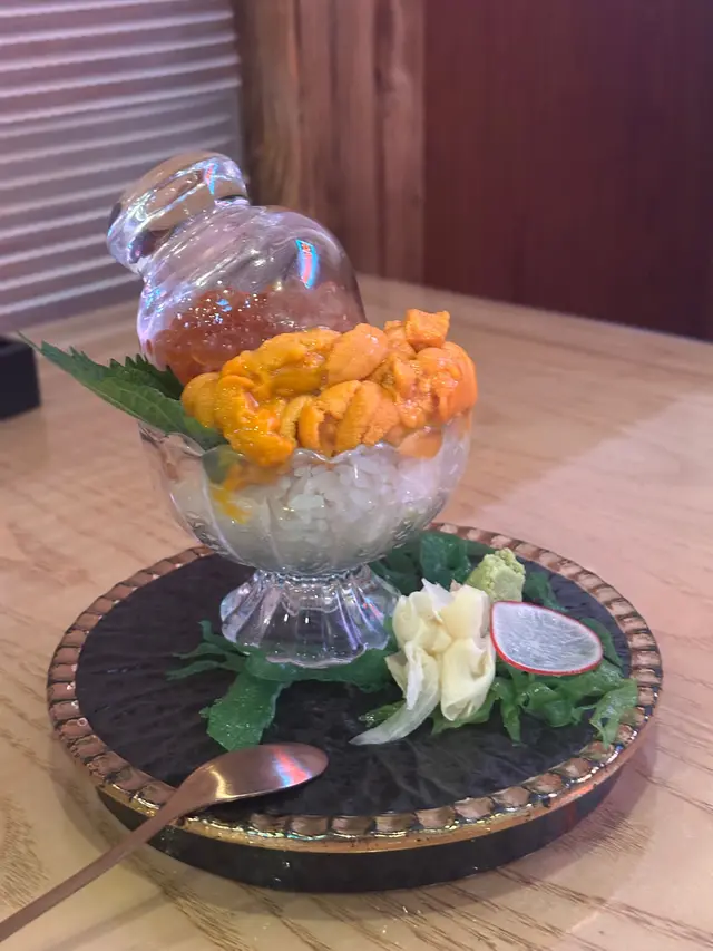 今晚我約咗外甥女,趁她回澳洲之前一起享受一頓美味的日本菜。呢間居酒屋🏮的裝修以日式木系為主,特別的是有榻榻米的食區,給人感受到濃厚的日本氣氛。店員服務態度非常友善。我們點了滿滿海膽杯,鮮美的海膽和魚子鋪滿壽司飯,用澎湃來形容😄😄接著是雞串燒盛盒,裡面有雞翼、雞髀肉、雞肉棒、雞皮和雞腎,五種口味都不同,燒烤得啱啱好;吉列童星蝦更讓我回到童年,外酥內嫩,配搭童心麵炸成的蝦,趣味十足。鯛魚高湯雜炊的湯底鮮甜,讓人一口接一口地想喝。芝士醬厚燒玉子則濃郁可口,完美的配搭;椎茸紫蘇豚肉卷和芫荽豚肉卷各有風味,食得好滿足。最後,仲有牛油果山葵漬,我第一次試這種吃法,好味😋飲品方面,我們選擇了巨峥梳打和飛雪蜜瓜梳打,清爽可口。今晚的聚會既開心又充滿美食的樂趣,真是打卡一流,樂而忘返!…查看更多