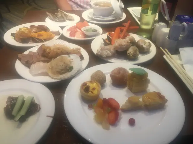 經kkday 買左這𥚃的下午茶自助餐,用了折扣$403/2位。安排坐在卡梳化位,十分闊寬。凍青口吾新鮮有異味,凍蝦就幾爽口,烤腸、烤雞槌、炸饅頭、豬頸肉,完全吾熱,牛肉球好香陳皮味和有馬蹄粒吾錯,燒賣正正常常,腐皮卷嗰皮好乾好硬,炒腸粉溶溶爛爛,即灼麵檔配料選擇少而且湯底只有一款就係清湯,皮蛋瘦肉粥冇乜料但有味應該落左吾少味精。甜點選擇多算系亮點,鬆餅、焦糖燉旦、鮮忌廉蛋糕、木糠布甸,都幾好食。飲品是自助的,西柚汁和杧果汁是室溫的口感不佳,凍檸茶茶味不濃。整體來說,坐得舒服,待應勤收碟,但食物就,鹹點不行,甜點還可。…查看更多