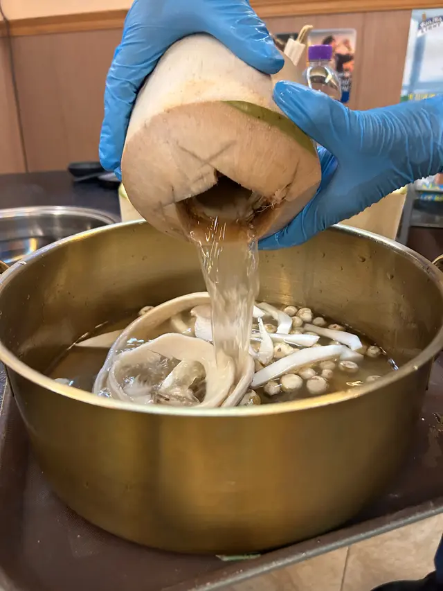 元朗火鍋,真材實料,推薦椰子雞鍋! 巴打火鍋館 2024-04-22店員會即場為你泡製椰子雞鍋,倒入3個椰子水,真材實料加入雞件煮,湯滾後再焗3分半;一開始我哋先飲湯,椰子雞湯超級清甜!雞有半隻,份量足夠兩人食,雞肉嫩滑,好味,多雞髀既部分呢個椰子雞都係1蚊雞煲優惠,另加30蚊!即係原本二百幾既椰子雞30蚊可以食到,超抵!牛方面,點咗馬扇古吊龍伴,牛味香濃有咬勁,都唔錯脆脘魚腩片真係好味,魚肉香又夠爽脆,會有一兩條魚骨,食既時候要注意黑栢葉都爽脆,加埋吸晒椰子湯汁既皇帝菜食,味道甚佳嘢飲方面,叫咗兩杯特飲,咸檸七、檸檬柚子蜜都份量充足,適合打邊爐飲佢有1蚊雞或全單88折優惠,計過係揀1蚊雞優惠較抵!…查看更多+ 5以上食評乃用戶個人意見 , 並不代表OpenRice之觀點。讚好分享元朗火鍋,真材實料,推薦椰子雞鍋! 巴打火鍋館 https://s.openrice.com/QrbT0SBbI00檢舉 張貼 評分4味道4環境4服務4衛生5抵食用餐途徑堂食