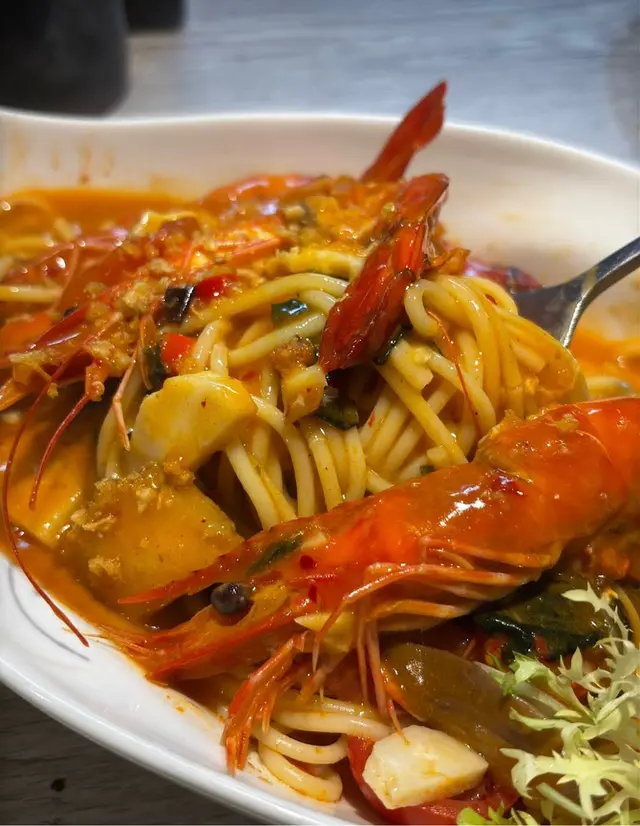尖沙咀人氣泰式餐廳 Thailand King 2025-08-18喺呢間喺尖沙咀既泰國餐廳,氣氛唔錯!好多朋友來呢度聚餐同慶祝生日!泰式冬陰功河蝦意粉,河蝦新鮮鮮甜,搭配香濃嘅冬陰功湯既湯汁,酸酸辣辣既意粉,好味!泰式原條鮮魷魚桶,魷魚外面係焦香,內裡好嫩,濃濃魷魚香味,配上特製醬汁,味道唔錯。泰式肉碎生菜包都好正,肉碎都好夠味,配上新鮮脆口嘅生菜金沙軟殼蟹就更加不得了,外面係脆香既咸蛋香,包住軟殼蟹,份量都好足夠青檸梳打好清爽,泰菜嘅最佳配搭!朋友就揀咗一杯黑啤(Guinness)…查看更多+ 2以上食評乃用戶個人意見 , 並不代表OpenRice之觀點。讚好分享尖沙咀人氣泰式餐廳 Thailand King https://s.openrice.com/QrbT09GrU00檢舉 張貼 評分5味道4環境5服務4衛生4抵食用餐途徑堂食