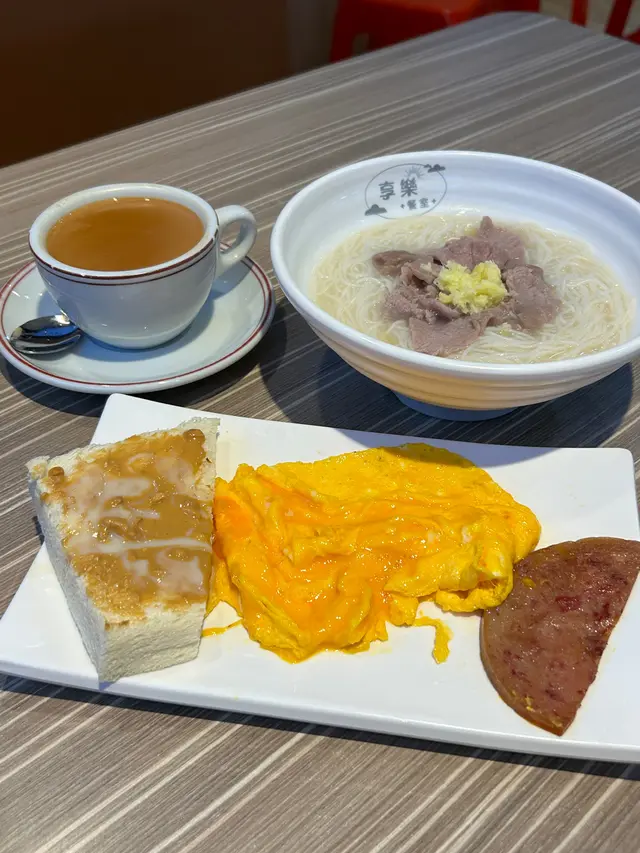 元朗茶餐好去處 享樂餐室 2024-03-17假日多數都係去下茶餐廳簡簡單單食下嘢。呢間餐廳午市套餐選擇都幾多,揀咗薯仔炆排骨飯。排骨炆得好入味,肉質結實多汁,搭配薯仔,薯仔外皮少少煎香,加上有草菇,醬汁夠香濃,撈飯一流!薑汁牛肉米粉,牛肉份量充足,煮至剛熟,牛肉肉質都好嫩滑。有清新薑汁味。配上炒滑蛋和午餐肉,滑蛋炒得剛好。加埋份奶醬多,多士香脆,好味😋茶餐廳必食菠蘿油,外皮酥脆,內裡鬆軟,牛油剛好融化其中,唔錯呀餐飲點咗奶茶,都夠香,凍利賓納都唔錯…查看更多+ 4以上食評乃用戶個人意見 , 並不代表OpenRice之觀點。讚好分享元朗茶餐好去處 享樂餐室 https://s.openrice.com/QrbT02RnH00檢舉 張貼 評分4味道4環境4服務4衛生4抵食用餐途徑堂食