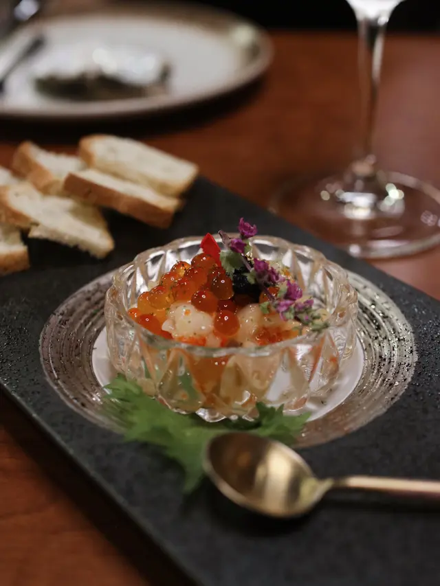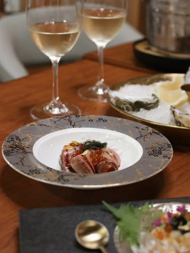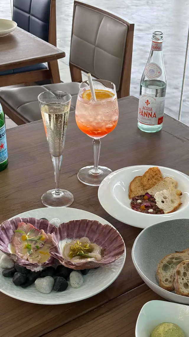 坐擁270度壯麗維港景色真的超美 衝著這個來!weekend brunch HK$598pp, 我們都加了freeflow! 有aperol spritz, cocktail, prosecco, red, white, mocktail等等 ($290 for alcohol package; $60 for non-alcohol package) 前菜有11款 可以無限refill! 我們refill了3 round 非常喜歡的菜式 (🤌🏻) ✨酸種麵包 • 紫菜牛油 ✨淺潰油甘魚 • 柚子味噌 🤌🏻✨淺漬帶子 • 昆布油✨和牛他他 • 金山寺味增 ✨漬紅菜頭沙律 • 八珍甜醋✨迷你羅馬生菜沙律 • 飯素✨布拉塔芝士 • 季節布冧 🤌🏻✨烤一夜干魷魚 • 醃蒲瓜✨炸粟米餅 • 紫菜 🤌🏻🤌🏻🤌🏻✨西蘭花苗 • 甜椒醬✨烤豬腩肉• 紫蘇葉、辣椒 🤌🏻🤌🏻.Main course 選了✨M7和牛後腰脊肉(+$120) 以羊肚菌、焦糖洋蔥、牛肉汁作調味,很香✨烤原隻波士頓龍蝦(+$220) 超大一隻的龍蝦非常鮮甜,調味使用西京味噌、辣椒、海帶,還有salmon roe, 很不錯👍🏻.最後還有一個dessert platter 有小蛋糕跟馬卡龍 吃到這裏其實已經很滿足! 這裏非常有氛圍感 很chill!!! …查看更多