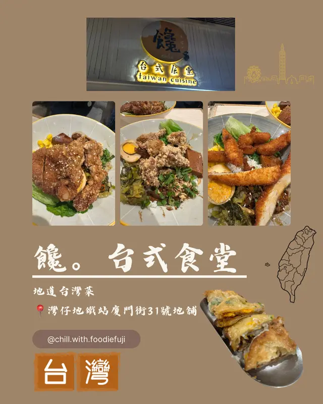 🍴是日餐單🍽️芋泥肉鬆蔥油蛋餅 $62一份4件,大大件~好香蔥油味!炸豬扒滷肉飯 $69炸雞柳滷肉飯 $62鹽酥雞滷肉飯 $59每個飯都包酸菜、滷蛋同滷豆腐!大大碗,食完好滿足😌— (о´∀`о) 滿分5隻貓💯味道:😽😽😽😽環境:😽😽😽😽性價比:😽😽😽😽😽🧋 饞。台式食堂 📍 灣仔廈門街31號地舖…查看更多