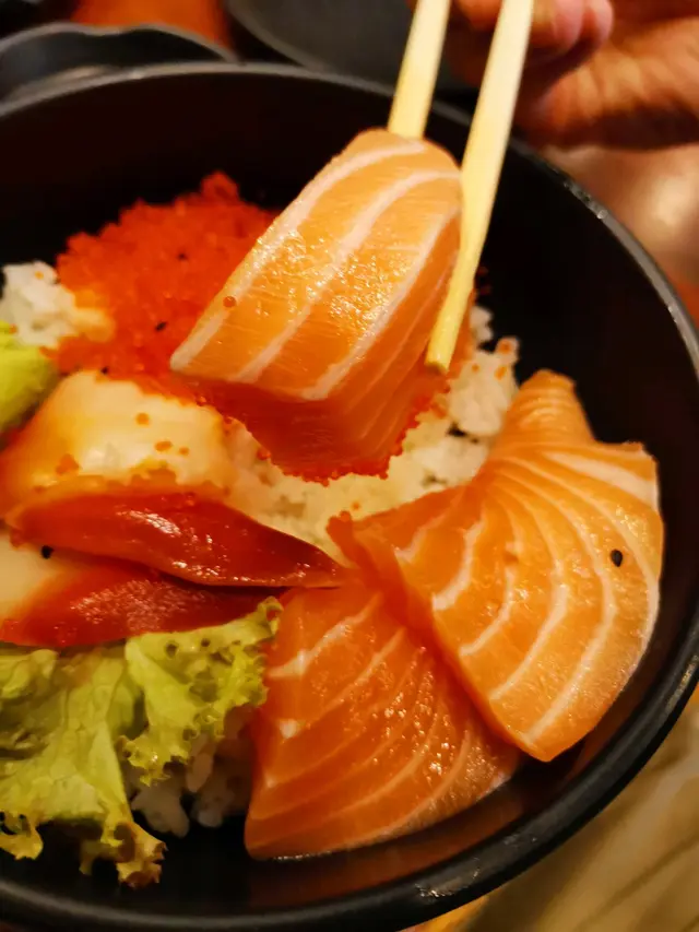 話說過年前因大廈有多單確診同座部分單位要徹離至觀塘某隔離酒店14日口痕情況下, 上熊貓搜尋搵到呢間呢間一直想試好耐叫左個 三文魚油甘魚丼,另加一客三文魚刺身嚟到有驚喜,比預期中大份同厚切雖然每款魚得3塊,但呢3塊都好厚必等於出面5至6塊咁上下一客三文魚刺身,仲要俾晒腩位冇得彈。非常厚切,不過食落唔算好鮮甜正常質素呢兩樣野折實之後連運費$117我覺得有驚喜,再加埋呢間小店一向俾人話大份抵食估唔到因為要被隔離而試到…查看更多