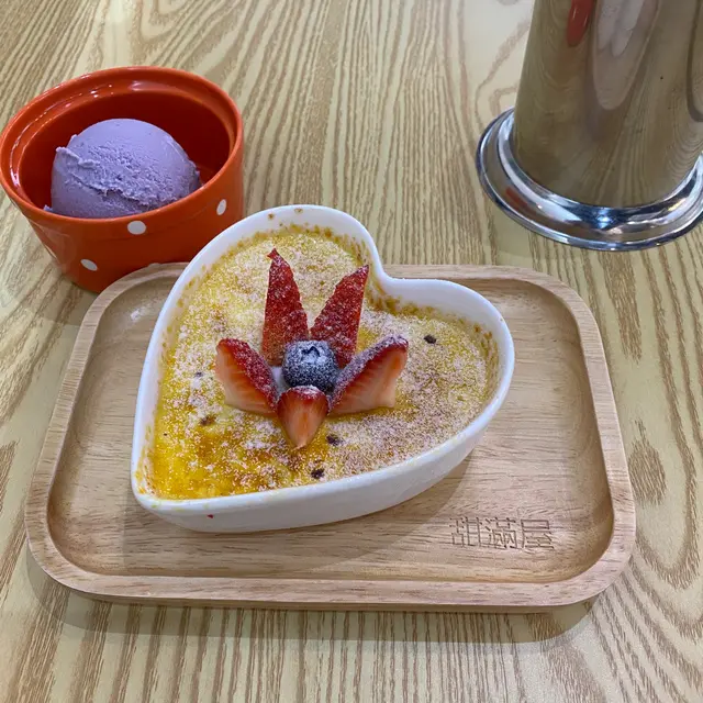 這家「甜滿屋」的窩夫真的是視覺與味覺雙重驚喜!木盤端上桌時,金黃窩夫的焦香先鑽進鼻腔,外層烤得微脆、內裡綿軟蓬鬆,咬開還帶著蛋香,撒的脆片又添了層次。