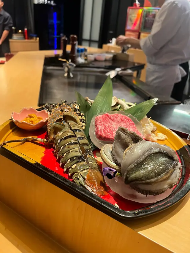 最近到訪銅鑼灣瀧宴,品嚐了期間限定的宮崎和牛龍蝦套餐(優惠價 $980|原價 $1580),全程以鐵板燒形式呈現,食材新鮮、烹調細緻,每一道菜都展示了日式料理的精髓與質感。環境寬敞舒適,柔和燈光同木質裝潢。坐喺鐵板吧枱,近距離欣賞師傅行雲流水嘅烹調技藝,簡直係一場視覺同味覺嘅雙重享受。季節前菜一開始嘅前菜就畀我一個驚喜。沖繩 水雲菜 酸甜開胃,滑溜溜嘅口感帶住一陣清新嘅薑醋香,瞬間喚醒味蕾。旁邊嘅薯仔綿密柔滑,配上 黑松露帶子,鮮甜中滲出松露嘅濃郁香氣,三者層次分明,完美開啟今晚嘅美食之旅。季節刺身季節刺身則選用鰹魚、鯛魚及赤蝦。鰹魚油脂均勻,鮮味突出;鯛魚口感爽脆,帶微微海水香;赤蝦刺身肉質彈牙,鮮甜透澈,蝦膏香濃,非常出色。瀧宴特色散壽司瀧宴特色散壽司以海膽、魚子和各款刺身肉組成,呈現得像一杯海鮮盛宴。海膽香滑甘甜,配魚子的鹹鮮,賦予整體濃烈卻平衡的海洋風味。各款魚生配上米飯,交織出豐富的口感,令人回味。海鮮茶碗蒸海鮮茶碗蒸入口即化,蒸蛋滑溜細膩,香氣滿溢,暖胃之選。季節吸物 (大蜆清湯)季節吸物是大蜆清湯,湯色清澈,入口鮮甜,蜆肉厚身無沙,暖胃又清新。汁煮愛媛縣鰤魚鮫汁煮愛媛縣鰤魚鮫以甘甜醇厚的日式湯汁煮製,鰤魚鮫煮得軟嫩入味,魚肉細嫩,保留鮮味,配搭吸滿精華的蘿蔔,啖啖滋味。野生生猛龍蝦野生生猛龍蝦由魚缸即撈,肉質鮮嫩彈牙,經鐵板微煎後鮮香四溢。配以龍蝦膏炒成的濃汁,鹹香濃郁,完美提升龍蝦的天然甜味。南非鮑魚南非鮑魚肉質爽彈,入口有天然海水鹹香,師傅火候掌握得宜,咬下即感鮮香四溢,軟滑入味。日本宮崎和牛日本宮崎和牛 真係無得輸!和牛油花分佈均勻,煎至五成熟,外層微焦香,內部柔嫩多汁,入口即溶。牛香與肉汁在口中爆發,配炸蒜片更添風味。煙肉香蒜炒飯飯粒炒到乾身粒粒分明,煙肉鹹香同蒜頭濃郁香氣完美融合,仲有蔥花點綴,清新又惹味。上面一隻流心太陽蛋,濃稠嘅蛋液同炒飯撈勻,邪惡程度爆表,令人一口接一口!炒什菜 簡單但出色,芽菜同雜菜炒得爽脆可口,帶有淡淡嘅XO醬辣香,解膩又開胃。是日甜品是日甜品為哈密瓜奶凍,質地滑嫩,帶天然果香與清甜,冰涼清爽,令人回味無窮,為整餐劃上清新的句號。總結瀧宴的宮崎和牛龍蝦套餐用料上乘,火候及味道層層遞進,餐廳的服務亦細緻周到,無論是慶祝或聚餐,都是值得推介的高質選擇。…查看更多