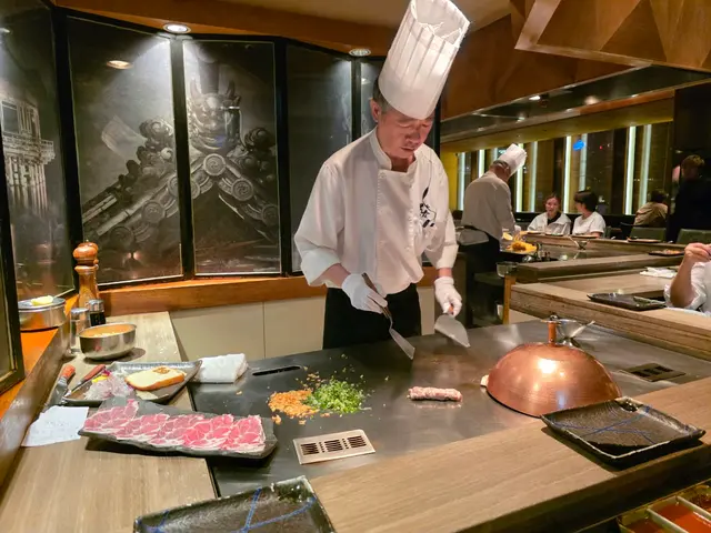 灣仔會展酒店內的鐵板燒餐廳,選了生日慶祝去。全部選了定食餐約$500-$1000/位。開始有沙津,全青色菜加大量油和鹽滷海帶,比較少見。之後鐵板燒帶子可能有些過熟,所以比較硬身。牛肉告知三成熟,成功完成!日式雪糕也不錯!可惜我們一行坐位很大油煙,裝潢十分舊,師傅亦比較混亂,食物和油都彈到客人位置!不得不提,洗手間隔音不太好,聽到隔離唱歌怪叫!!!最後買了中環酒店即時做好的拿破崙生日蛋糕,原來跟本沒有放入雪櫃,是暖的,cream也軟的,酥皮也不脆了!!經理只係walkie talkie 問有無同事放入雪櫃,最後無人應機,一句不好意思就了事!!!建議大家不要特別紀念日子光顧,而且坐和食枱,遠離鐵板!!!…查看更多
