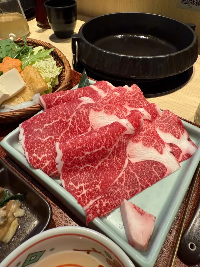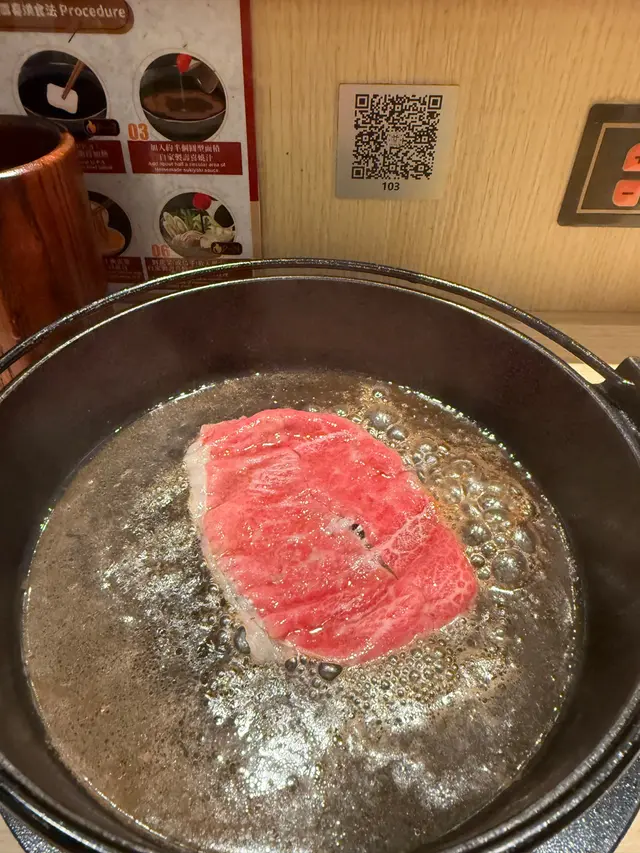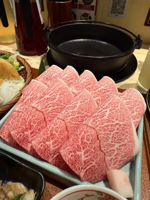 🥇自己燒壽喜燒😋.今次黎到呢間自己燒壽喜燒既尖沙咀分店,試試佢哋個尖沙咀店限定既牛板腱壽喜燒大盛套餐🤤睇都見到牛板腱既油花分布均勻,淨係用黎打卡都夠照🤣🤣當然佢睇得又食得😝食落嫩滑得黎肉味濃郁💕 點埋啲蛋黎食係滑上加滑🤩呢度仲要係用蘭王蛋!正喇!.另外叫左個赤身並盛份量係細啲,平啲就啲肉就少啲油花,但肉味都唔差☺️關於點燒啲肉,枱上面有晒教學❤️店員都有教熱得濟要倒多啲汁,唔好燒燶啲牛😝個人喜好而言呢😆我同🐡🐡就鐘意有啲燶有啲焦糖feel ,所以後期個幾塊就落少少汁就好😋.食完晒啲肉,我地就先慢煮蔬菜,先再加烏冬🥰咁就有菜送烏冬食😁最後甜品仲有蕨餅,食落都幾好👍🏻提提大家記住book 位😂是關我地閒日夜晚去都多人😝…查看更多