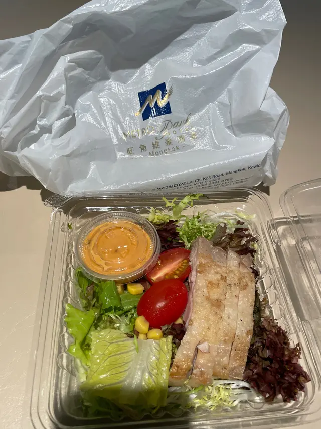 睇到電視介紹四星級酒店竟然有$35嘅外賣飯賣,特登過嚟試一試。可惜嚟到當日佢大部份嘅飯都賣晒,最尾唯有揀個雞肉沙律,成為$30,但因為唔係午飯,所以冇得跟嘢飲同例湯。佢個沙律都係Standard嘅沙律,雞就有四至五片。以$30嚟講,已經非常好!…查看更多