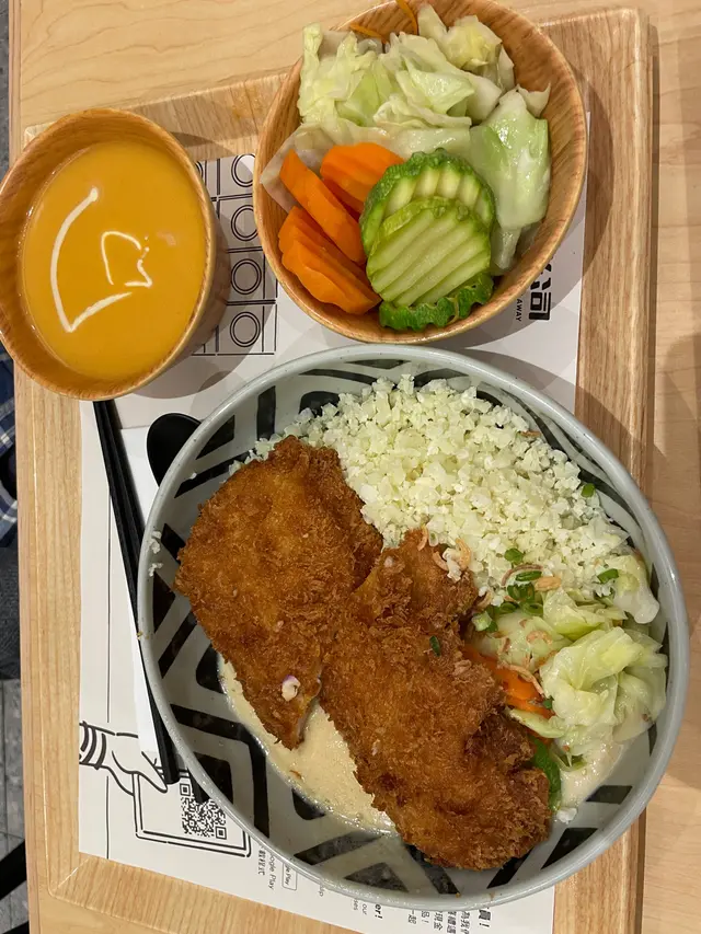 放工經過,主要俾呢度嘅椰菜花飯吸引咗.話說依家越嚟越少地方有椰菜花飯提供,唔知有冇人好似我咁鍾意食椰菜花飯.厚切豬扒椰菜花飯椰菜花飯本身有少少調味,食落清清淡淡.反而後切豬扒有驚喜,豬扒食落Juicy,而炸粉亦都做得薄身,食落好脆.可惜成餐飯食完之後好口乾,可能唔多唔少都有落味精.一個咁健康嘅椰菜花飯落味精…. 🤦‍♀️蟹粉豆腐鍋飯味道同咖喱王嘅蟹粉豆腐鍋飯一模一樣 😂…查看更多