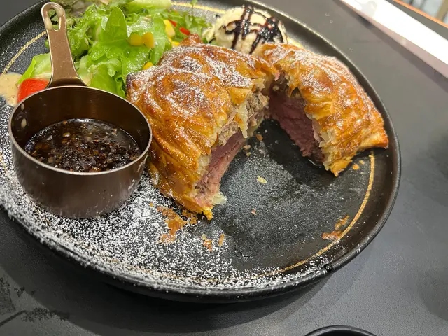 位於始創中心B1 餐廳抵食 味道不錯二人餐$200多啲 兩個餸有嘢飲 飲品可以喺水吧或者自己喺雪櫃度拎有 洛神花茶 羅漢果茶等等 不是普通紙包飲品係一樽嗰啲威靈頓有肉汁味道幾好 配薯蓉 有驚喜 而且佢係即叫即焗雖然要等耐啲,但係佢真係熱辣辣咁樣出嚟 切嘅時候都唔會散晒值得推薦。乳豬同卡邦尼意粉幾夾 蛋同芝士味重 仲有啲煙肉同埋菇咁樣 都算幾好食 意粉軟硬度適中唔會腍啤啤嘢飲正常 冇咩特別 唔會特別趕你走 。不過都有可能係因為我哋食飯嘅時候不算太多人服務正常 座位唔算迫 值得一試…查看更多