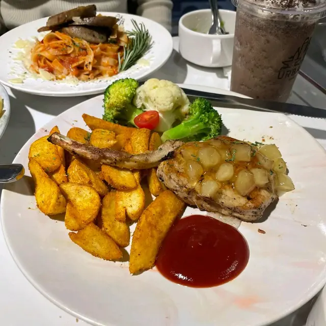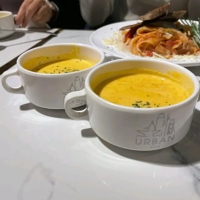今次同朋友來urban cafe,一路以嚟都覺得佢嘅嘢食都唔錯,夠晒抵食,啱晒我哋四個朋友一齊聚會!今次我哋嗌咗四人套餐,裏面可以嗌4份前菜、兩個主菜再加兩個飯或者意大利粉。我哋叫咗:四碗餐湯-餐湯大推!有少少忌廉加埋南瓜蓉去煮,果然係世上最邪惡嘅配搭!芝士黑松露野菌忌廉意大利飯-呢個夠晒香,芝士味都好重,正常就係黑松露味唔會好假,加埋野菌就一流。挪威煙三文魚拉絲水牛芝士手工薄餅-Pizza上桌嘅時候已經切好4份,上面鋪滿一塊塊挪威煙三文魚,而佢個base就係水牛芝士!仲可以有少少拉絲嘅效果🥰西班牙黑毛豬肋骨配扁意粉- 燒烤醬配上豬肋骨,果然係最正嘅享受,肋骨與肋骨之間嘅肉肥得來又唔會好油膩,而且佢嘅貶意粉係用橄欖油煮,真係勁香飲品方面,最鍾意就係佢杯朱古力沙冰,飲飲下仲可以食到有朱古力脆脆,而且配合埋沙冰,成杯朱古力都唔會好甜,啱晒我呢啲減緊肥嘅人…查看更多