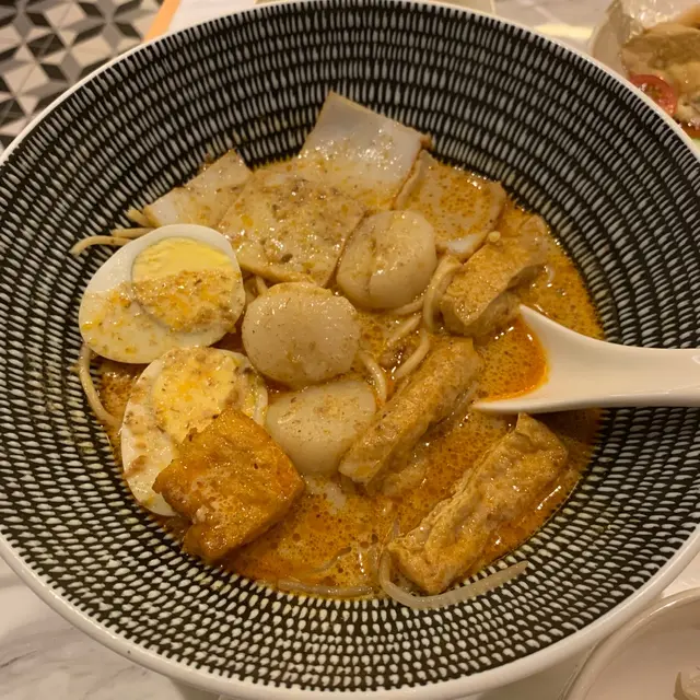 Chatterbox Cafe bills itself as the originator of Mandarin Chicken (also known as Hainan Chicken). If this is true, I am glad that many other restaurants have since improved greatly on the dish. We ordered the Mandarin Chicken, the Scallop Laksa, the seasonal vegetable, and a Milo Dinosaur. The vegetable and the drink are normal. The Mandarin Chicken was a disappointment. It is obvious the Chicken was brought out from the freezer as the meat wasn’t springy at all. The portion served was also quite small for ~$120. The rice and the sweet soy sauce were quite good. The Laksa’s flavour was decent but the amount of soup was so little. Most of the noodles and “seafood” were above water. I say “seafood” because aside from the three small scallops, the rest were just bean curd and fish cake. You are likely going to run out of soup before you run out of noodles- they might have wanted to highlight the bowl design (see photo). It cost $150. I suspect the chefs at the original Chatterbox did not travel to HK to open the new store. They might have just sent the recipes over: it is a pity. I would not recommend lining up.