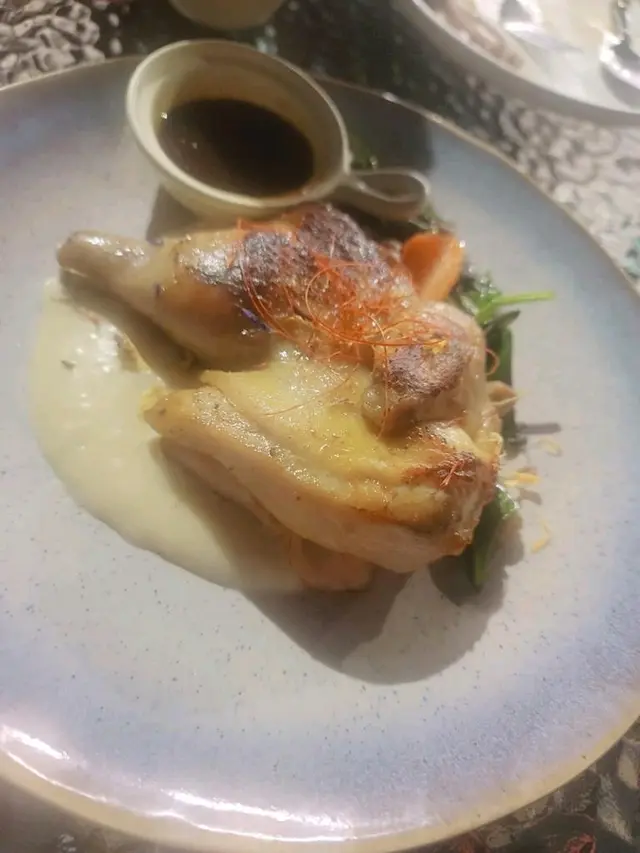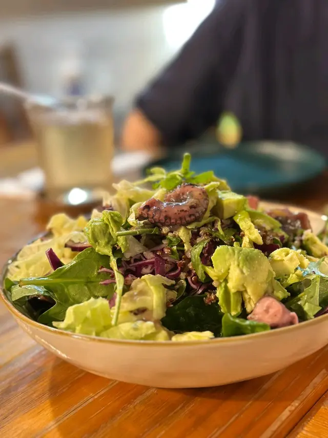 荔枝角返工,呢間大家講嘅隱世餐廳已經食過好多次,基本上可以叫飯堂,多數同班同事嚟食lunch,第一次試夜晚Menu,好處係唔使lunch食到急急腳走慢煮八爪魚,藜麥沙律佢哋既沙律菜次次都好新鮮好鬼清新,幾鍾意佢再加八爪魚嘅口感,份量重好多一個人真係食唔晒竹炭脆糠牛油焗田螺• 雲吞脆片造型好得意好似盆栽🪴雲吞脆片好香口配合幼滑嘅薯蓉牛油味好出,但個人口味認為個薯蓉個調味再濃味一d整體感覺會更佳。法式奶油香蒜蝦球•麵包碗真係大大力推薦,個包焗到好香脆,入面嘅醬汁嘅蒜蓉味同埋芝士味係完美結合,勁香濃,成班friend勁快K.O.澳洲m3和牛肉眼扒,法式忌廉胡椒醬。脆炸薯條呢個牛扒係我哋決定會再夜晚encore嘅原因,望上去好似好生,但原來食落去係不得了,真係做到外脆內嫩,咬落去仲鎖住啲肉汁,不枉我係佢哋網店都成日買牛。坐得舒服,性價比都幾高呢度都係唔錯嘅選擇…查看更多
