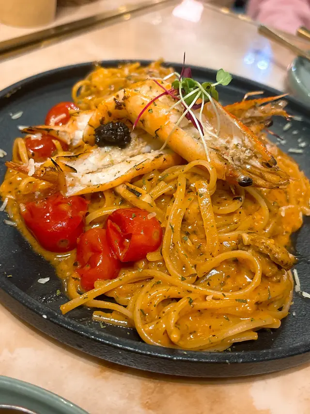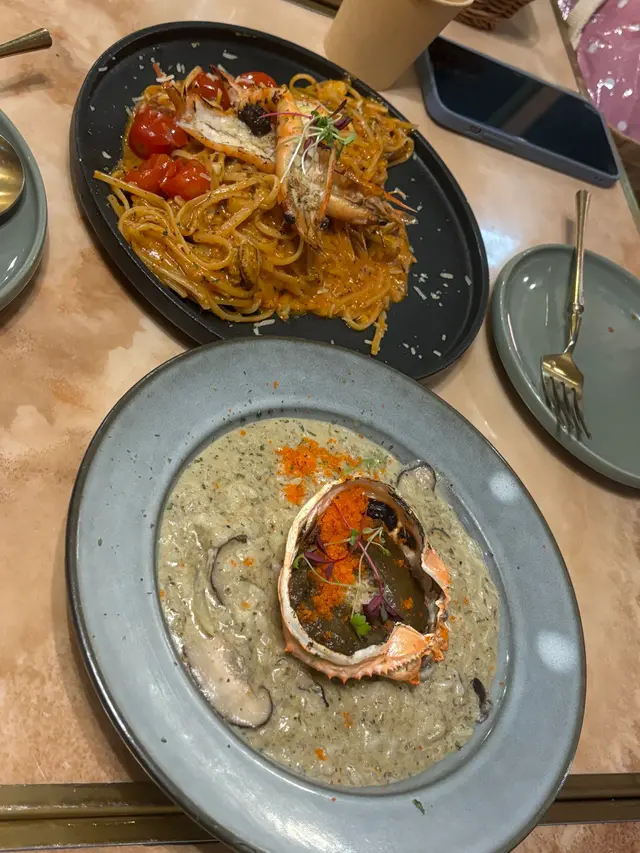 今晚四女仔一齊入嚟餐廳食嘢,我自己就形容好好食喎!特別係開心果咖啡,開心果沙冰,蟹蓋意大利飯好好食!黑松露薯條都好好味呀,之後都甜品都好好食搞到變咗好似大胃王咁⋯⋯平均餐廳價錢我覺得唔算貴!而且服務員都很好,很有禮貌!環境又唔錯👍⋯⋯地點其實都好方便奧運站行過嚟又好近,油麻地站行過嚟都算OK·我哋大家返到屋企就討論呢間餐廳,四個都話好好食想再試其他嘢食,我哋下次聚會要再嚟啦