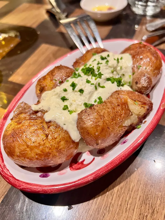 位於鰂魚涌既呢間意大利餐廳充滿着意大利歌劇院嘅設計😚以20世紀既意大利歌劇院為設計靈感,裝修設計非常華麗🤩每一隻餐碟更加由意大利工匠手工製作😎每一隻都獨一無二🤫—————————————————————當你落單後,先會有一籃麵包🥖作小食🤭麵包分別有4款,小編至愛係脆片🤭點上黑醋同橄欖油,簡直胃口大開😜RED PRAWNS CARPAICO(前菜)💲2️⃣1️⃣8️⃣由西西里紅蝦、水牛芝士配上檸檬油製成🍋檸檬油既酸味帶出紅蝦既鮮味🦐再加埋水牛芝士🧀中和左油膩感CHEESE WHEEL AL TARTUFO(意粉)💲3️⃣3️⃣8️⃣廚師會將熱辣辣既手工通粉放入巨大芝士輪,之後係你面前攪拌至每一粒通粉都充滿芝士🧀再將芝士通粉放入熱辣辣既碟上🍛最後會即席刨出芝士粉同黑松露片,完全係視覺既享受😍意粉好彈牙,食落芝士味唔算重,有微微嘅黑松露味,唔會太漏😙1KG PREMIUM RIB ON THE BONE(主菜)💲9️⃣2️⃣8️⃣牛扒係小編既至愛😍牛扒外面煎至香脆,入面軟腍,一放入口炭燒味同油脂一擁而上🤤牛味都非常濃,原味都已經令人難忘🤭配埋特製醬汁,更加係味蕾嘅衝擊😍令到小編成日徘徊係原味同點醬汁嘅交叉點🤣GRILLED LAMB CHOPS(主菜)💲2️⃣6️⃣8️⃣小編平時唔太喜愛羊既臊味,但係呢個羊架既臊味係帶香🐑就算唔鍾意食羊嘅朋友都可以接受🤭薯蓉係伴碟,非常軟滑🥰好易入口😝RATTE POTATOES (side dish)💲6️⃣8️⃣呢個可以稱為最強SIDE DISH😌薯仔焗到外皮焦香,再灑上黑胡椒同鹽調味,上面淋上sour cream🤤非常惹味!當日小編一行四人,最後要叫兩碟先夠食🤣…查看更多