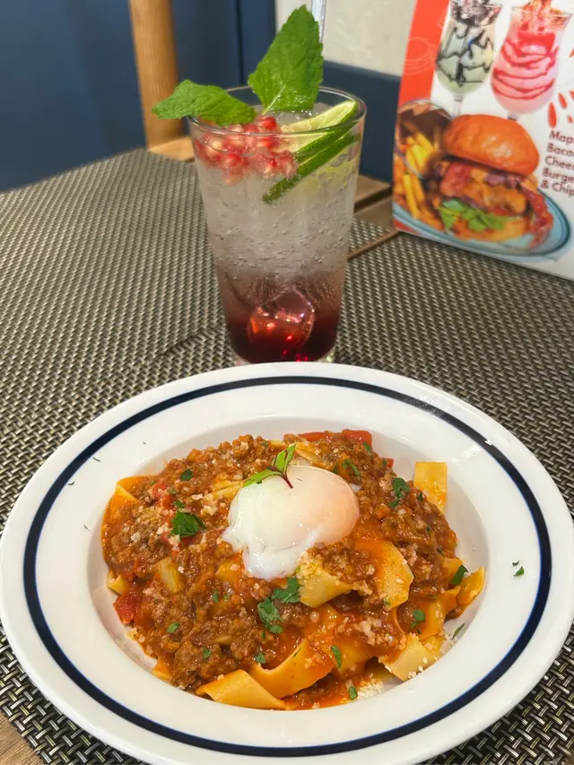 餐廳裝修舒服悠閒,啱晒同朋友吹水食飯~安格斯牛肉肉醬溫泉蛋闊條麵($135)拮穿溫泉蛋撈埋啲肉醬度令到成個醬更滑更香濃,每條麵都被肉醬包裹住👍🏻,不過我鍾意麵質再煮煙韌少少~Maple Bacon Cheese Burger & Chips($148)安格斯牛肉扒好Juicy,麵包烘得夠香,超鍾意落咗楓糖漿嘅煙肉,好香😍推介!慢煮手撕豬肉洋蔥圈($82)手撕豬肉一啲都唔嚡,洋蔥圈加埋酸酸甜甜嘅沙律醬同埋蕃茄一齊食,唔會覺得油膩~Hojicha pancake ($132)Pancake軟熟,唔會太空氣感,食落有蛋香,加埋焙茶醬一齊食好好味🤩,旁邊仲有黑糖蕨餅👍🏻,柑橘、朱古力脆米,口感豐富🤤石榴青檸梳打($48)開頭有點擔心會唔會係藥水味,點知飲落幾驚喜、幾清新👍🏻…查看更多