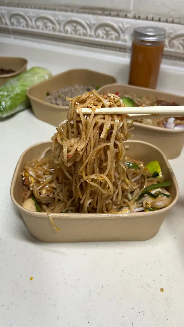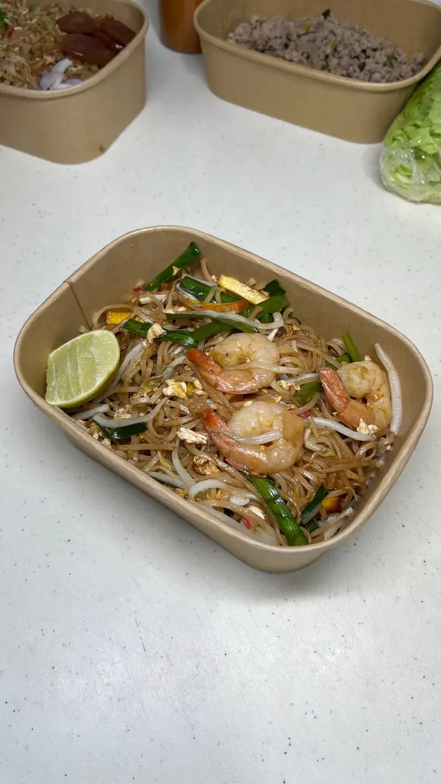 這間位於旺角中心的【Thai Shack】,是一間泰國菜外賣店,有多款泰式飯麵及小食,而且價錢合理及份量十足。炒粉炒飯全部都是即叫即炒,新鮮熱辣且有鑊氣。泰式炒金邊粉大蝦、蛋絲、芽菜、葱等配料,金邊粉爽口,十分開胃。泰式蝦醬肉碎炒飯 陣陣蝦醬鮮味,炒飯粒粒分明又爽口,加上臘腸及肉碎油脂滲入飯內,十分美味。泰式燒豬頸肉豬頸肉配上特製醬汁更添風味,而且肉質爽口。泰式肉碎生菜包生菜色澤翠綠,十分新鮮,配上微辣的肉碎,食到停不到口。泰式奶茶奶茶茶味濃香而且不會太甜,正好清一清味蕾。…查看更多