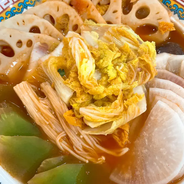 晚餐我自己一位入座,空間寬敞開揚,現代感設計順眼;牆上有大型圓形字樣同色彩搶眼嘅品牌標語,幾啱打卡📸。枱與枱距離闊落,私隱度足。素食王套餐 🌟🌟🌟🌟:固定配菜但夠齊全,萵筍清脆帶甜、娃娃菜嫩口、蓮藕片爽脆、金菇滑溜、鮮冬菇厚身有菇香、白蘿蔔片吸湯變得清甜。土豆粉Q彈掛湯,食落飽肚又不笠。份量對一人晚餐啱啱好,價值感高,唔駛花巧都實在。鮮茄濃湯 🌟🌟🌟🌟🌟酸甜平衡,番茄果香突出,質地濃而不糊口,飲到尾仍清爽。配上蔬菜層次豐富,暖胃度一流🍅。惹味杏鮑菇 🌟🌟🌟🌟:菇身厚切多汁,邊位帶微微煎香;醬汁鹹香中帶蒜椒香,辣度不搶戲,鎖住菇汁。口感爽彈不韌,配湯配粉都夾。整體油份控制得宜,越食越想再夾幾件🍄。店內無用餐時限,適合朋友或家庭聚餐。湯底選擇多元而少見,素食都可以食出層次🔥。…查看更多