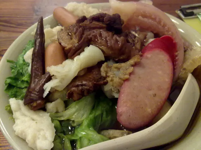 是這裡開了不太久的潮州菜館, 位子少少, 初時只做晚市, 最後有午市, 甚至一o的幾港式o既飯款要了這麼個麻甩的生腸墨魚飯先來的紫菜湯倒不錯, 有點肉碎, 紫菜味是有的, 一些豆腐, 喝起上來幾開胃生腸幾爽口, 味道卻是靠伴汁似的。墨魚亦然, 軟硬幸而適中食完都唔夠喉咁但整體味道真係有待進步呀…查看更多