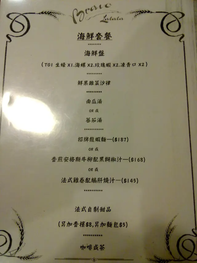 今天是個佬與佬之間的小聚, 由肥仔揀選用餐地點, 今次佢的確揀得好好店子小小, 但有格調, 算寧靜, 洗手間亦企理最吸引的是海鮮餐, 又平又多o野食海鮮盤細生蠔x1, 海螺x2, 玫瑰蝦x2, 凍青口x2食落都覺得新鮮, 固之然細隻, 但味道同滿足感很好。尤其係玫瑰蝦, 粉紅顏色美艷, 食落仲覺得幾香甜, 好得意同特別鮮果雜菜沙律新鮮生果, 開胃惹味南瓜湯好濃郁的南瓜味, 清甜法式雞卷配鵝肝燒汁香軟, 惹味, 嫩滑, 雞味好突出亦唔覺肥膩。燒汁不太吃得出有鵝肝味, 幼意粉煮得好, 有口感, 加一點配菜, 簡單的滋味法式自制甜品是日係芝士蛋糕, 少少濕非常好, 芝士味剛好, 亦不甚有雪味最後來一杯熱咖啡, 非即沖之輩, 誠意可嘉這個價錢換來如此高的品質, 難得…查看更多