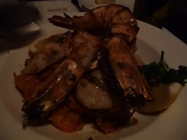 今天年初二, 約o左o的同事仔去長洲行o左個圈, 再夜晚睇煙花, 晚飯於此 (三人行)地方唔難搵, 餐廳環境是典型的暗淡, 但對住馬路加上無door 的設計, 情調是大減的每人要了一個dish, 但我只為其一拍了照~~~先來的麵包不是太好, 雖然熱度好夠但麵包味道就欠了相中的是海鮮意大利飯, 非常有水準首先飯是茄汁系, 吃得出蕃茄的原味鮮甜兩隻大虎蝦, 肉多鮮美帶子亦很清甜仲有o的魚柳同蜆肉都很不俗價錢也是相宜的, 亦有water 供應 ~…查看更多