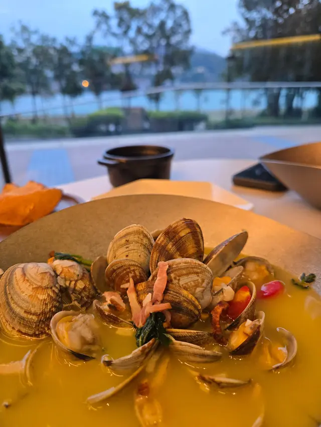 青衣城一期新開左間意大利餐廳,於是星期日下晝就去試吓佢個下午茶。差唔多5點,出面有人等緊位,入面都坐滿,不過兩個人都好快就可以入去坐,仲有個窗口位添,望住海濱長廊食嘢都幾好吖☺️🌟香草白酒煮蜆配麥包 $45上菜時賣相雖然一般,但食落都幾好味,蜆肉索咗啲香草白酒汁幾鮮美,麥包望落去好似好硬咁,但原來食落去,表面係脆脆地,入邊係軟身嘅,點啲香草汁嚟食都不錯嘅🌟(茶餐)肉醬滑蛋漢堡 $44一望到就已經唔知如何入手,食緊嘅時候入面啲醬不停唧出嚟🙈 有點難handle,有點失望…🌟(跟餐) 蜜糖芥末雞翼 $15煎得唔錯,入面啲肉汁都保留到,點埋芥末更野味,如果可以煎到啱啱好金黃會再好啲總括而言,以呢個價錢喺青衣城坐得舒服咁食到個下午茶,CP算係幾OK啦。小瑕疵係餐具有少少污糟,最好用水浸一浸先用。臨走前見到佢出邊有個小型麵包餅店咁,啲款式都幾新穎,例如有紅豆撻、麻糬撻、菠蘿酥、菠菜芝士貝果、堅果芝士批等等,得意得嚟個樣都幾靚,價錢都唔貴,搵次再嚟試吓先…查看更多