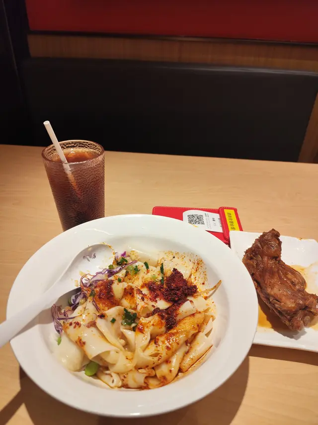 今天來到這間充滿驚喜的餐廳我點的是推薦的大碗油潑麵套餐。一上桌就讓人眼前一亮,潑麺呈現誘人的紅油色澤,醬香濃郁卻不死鹹,肉質鮮嫩多汁,搭配酸梅湯,簡直是絕配!整體份量十足,CP值很高。環境方面,雖然客人不少,但服務人員態度親切,上菜速度也快。餐廳裝潢簡潔明亮,帶有一點中國西北風格,適合朋友聚餐或一個人靜靜享受美食。總結來說,菜式特別,餐點品質也相當令人滿意。下次還會想再來嘗試其他的餐點,推薦給喜歡發掘新奇餐廳的你。…Read More