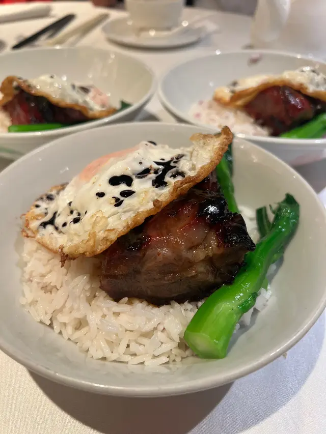 話說有朋友食完e到嘅黯然叉燒飯大贊我就特等定位黎試下原本打算食lunch點知距話夜晚先會serve黯然叉燒飯唯有食晚餐原來距booking好爆星期四 五同weekend基本上已經爆滿我地唯有book星期一晚但我黎到之後發現其實都幾多人no show可能係因為距之前唔會打黎confirm booking更加唔會收deposit今日嘅主打系黯然叉燒飯距有套餐$398一個不過我覺得食物一般所以無叫根據我嘅research都幾多人食釀蟹焗蟹蓋($120)距比起一般酒樓算好多蟹系入面而其他材料嘅比例唔會搶左蟹嘅味道另一個菜就係荔茸香酥鴨半只($210)距剛剛炸起雖然系炸但唔會覺得過分油俐鴨都好滑最後就係主角黯然叉燒飯($238)有朋友提醒最後兩個人share一個我地3個人叫左兩個一個叫距分一半有一個就係全份點解要叫距分一半唔系自己分系因為蛋系其中一個精華如果叫距分距會加一隻蛋($40)叉燒系厚切就甘一開為二上可能無分開感覺距非常juicy肥瘦分佈平均飯系用生熟蔥油加有d甜味嘅醬油仲有生嘅洋蔥碎雞蛋系半生熟總知加埋真係好配合好好味…查看更多