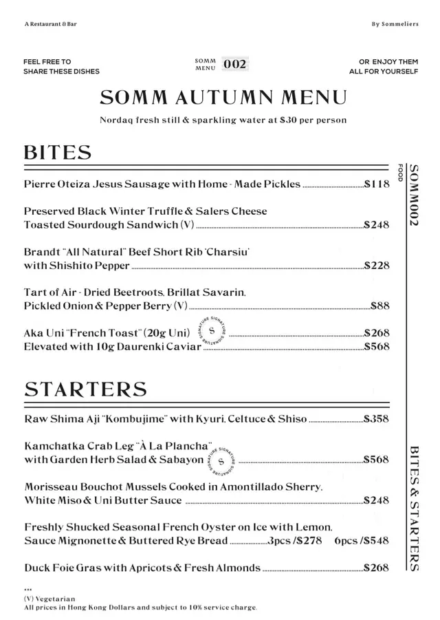 今日朋友生日所以就同距食過lunch之前d食評都係見到d人講weekend ge brunch好少有人講lunch平日weekday其實唔太難book位我都係早一個星期booke間餐廳系用digital menu自己用QR code睇menu我都系叫waiter黎推介食咩首先系complementary ge麵包麵包帶酸所以d牛油應該要再咸dBites叫做Aka Uni "French Toast" $268一件海膽好新鮮完全無苦味下面ge french toast暖暖地同海膽異常甘配合好正另外waiter有推介Morisseau Bouchot Mussels cooked in Amontillado Sherry $248距ge份量都幾大足夠兩個人食距醬汁用海膽同埋牛油整,再加上Sherry同埋Port Wine食落去有幸福ge感覺啊!之後叫左個距推介ge Japanese Pork Belley $328可能因為系pork belly都系幾肥不過距煮得幾入味基本上唔洗再點額外ge bbq sauce 另外一個距地ge signature dish就係Dry Aged Challans Duck Breast $418距同一般般出面ge鴨胸好唔同距特別林面頭燒到脆有d似燒肉不過如果更脆會更好最後甜品我地share一個Abinao Chocolate Souffle $128有朱古力味得黎又唔會太甜好味道…查看更多