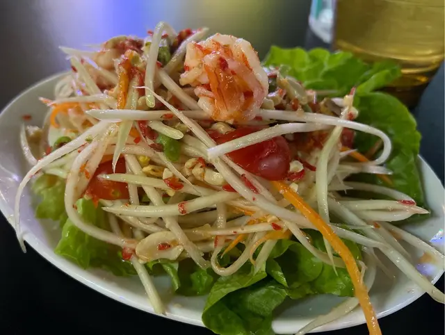 記得香港除左九龍城有泰國菜外東涌都係一個搵到地道泰國菜嘅地方今日同朋友行完山後就係山腳搵左間泰國菜小店以係in the middle of no where嘅地方離講距都唔算平我地大約7點黎到見到只有一台客開頭有少少擔心點知距話入面係fully booked唯有坐外面不過甘好嘅天氣加上我地行到成身汗其實坐外面都唔錯我地叫左個青木瓜沙拉,味道一般,好咸我地食左少少就無食距地好好甘問我地系米唔中意食之後就無計我地錢之後好值得推介就ge就係個個咖哩牛腩牛腩汶得非常入味甜道同辣道balance得剛剛好咖哩牛腩美味指數系👍🏻👍🏻👍🏻👍🏻👍🏻之後個菠蘿炒飯同牛肉都普普通通啦而芒果糯米飯我地點ge時候距都已經同訂我地講有d硬…查看更多