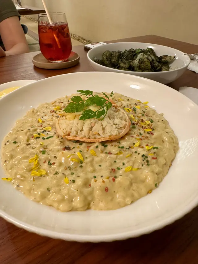 超高質日式榻榻米 Cafe MUTA Restaurant by ATUM 2024-01-17「非食評」 純粹個人意見一直都想同朋友嚟呢間餐廳食飯,咁啱得閒去尖沙咀,就一定要試吓呢間個個都讚嘅Cafe🤩位置喺尖沙咀美麗華廣場,位置方便唔使講,仲要裝修眼前一亮💫試咗個羅甲燒意大利飯,同埋紫菜魷魚Gnocchi,真係冇得彈💯意大利飯勁重,奶油味又香又滑Gnocchi煙煙韌韌好似食緊韓國年糕咁,仲要勁重海鮮同埋紫菜味。日西合璧,環境同埋食物都唔錯🗣️…查看更多以上食評乃用戶個人意見 , 並不代表OpenRice之觀點。讚好分享超高質日式榻榻米 Cafe MUTA Restaurant by ATUM https://s.openrice.com/QrbT0DWDG00檢舉 張貼 評分4味道3環境3服務3衛生3抵食推介美食蟹肉蟹膏甲羅燒燉飯松露芝士薯條·蛋黃醬用餐途徑堂食