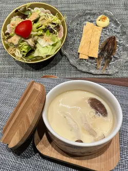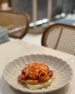 餐廳內外都放滿聖誕裝飾,充滿聖誕氣氛,剛好今日溫度唔太凍,餐廳安排坐外面都唔覺凍,亦坐得舒服 。食左個好豐盛2人 Dinner Set😆是日餐湯今日嘅是日餐湯係南瓜湯,味道香甜,口感順滑。牛油餐包餐包分別有麥包,法式麵包同埋蒜蓉法包,有著唔同口感,麥包比較厚實,蒜蓉法包較脆口。白酒忌廉煮青口青口新鮮,吸收左白酒同忌廉汁,味道鮮甜,白酒忌廉汁仲有海鮮味,味道亦唔錯。挪威三文魚扒焗蟹肉三文魚中間讓入咗蟹肉,當食三文魚既時間夾埋蟹肉,除左口感特出之後,味道上都加左一層層次,除左三文魚嘅魚香,仲夾雜蟹肉既甜味。蟹肉海鮮龍蝦汁蟹籽天使麵天使麵麵質嫩滑,同鮮龍蝦汁蟹籽,再加上蟹肉,味道甜甜地,口感時軟時脆,仲食到一絲絲既蟹肉,值得推薦。仲可以升級其他特色飲品餐牌:環境:…查看更多