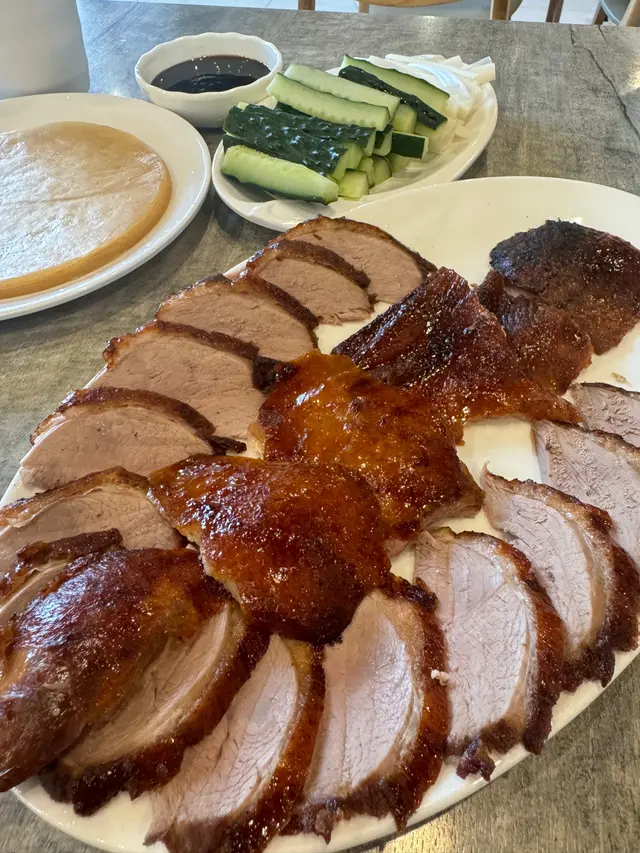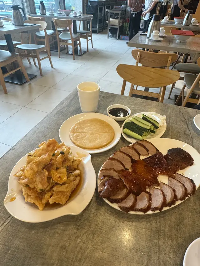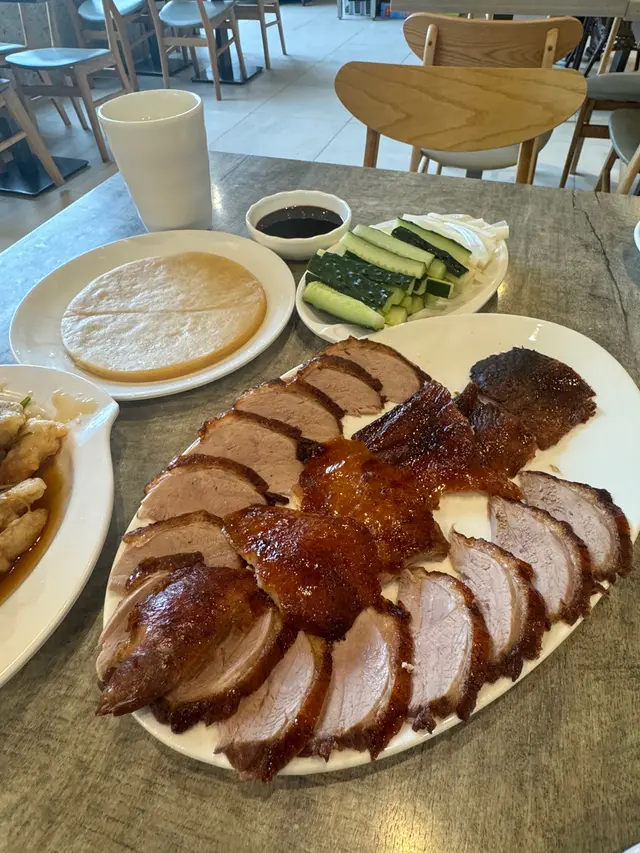 好耐冇黎呢間餐廳食飯😂最近又想食片皮鴨,即刻又諗起呢間。因為價格真係比出面抵,半份已經夠曬2個人食,仲免收加一,係咪好抵😂片皮鴨(北京填鴨)每一次都好大塊,又油潤,我覺得鴨肉直情唔使點汁,因為已經夠香夠味😝中間果排以鴨皮為主👍🏻油份十足,鴨皮脆口,係好正宗嘅片皮鴨口感。旁邊就係鴨肉切片,冇咁肥膩,鴨肉亦鮮嫩,食多幾塊都唔怕太油膩。北京填鴨呢個菜,餐廳每枱都幾乎會叫😂果然係人氣菜式。 另外仲叫左份鍋包肉😍好大一碟,份量十足。 表皮炸得好香脆,個汁有少少酸甜味,幾惹味開胃。豬肉薄薄一片,好易咬又好鬆化。呢間真係會再食🤗因為價錢唔貴,份量又足,又唔收加一👍🏻抵食…查看更多