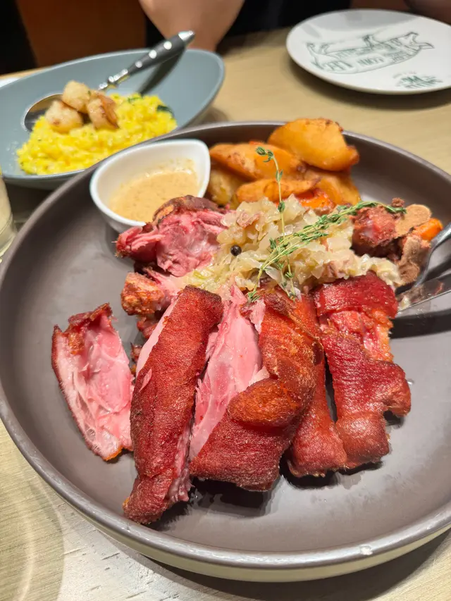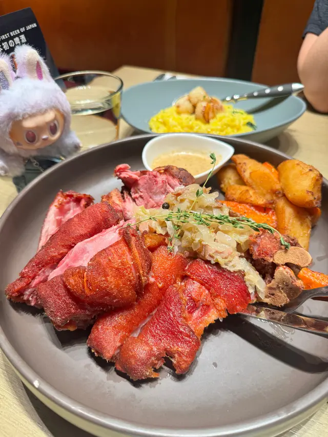 去沙田食生日飯😚老公最鐘意食脆嘢😂所以揀咗呢間餐廳食脆皮豬手 之前食過其他分店,所以今日黎沙田呢間食下👍🏻keep 到個質素,一樣咁好食。招牌德國咸豬手,必食推介😂❤️真係好好味,又大份。未食過嘅😂記得留意份量,因為上枱真係好大碟,2人份量黎。豬手好貼心咁起好曬肉,唔使自己再慢慢切啦,舊舊肉都好大😂如果原隻上真係大到不得了。外皮好香脆可口,帶有少少焦香嘅咸香味真係好好味,內層肉質亦唔會「鞋」口,仲好juicy 👍🏻果然係餐廳嘅皇牌菜式我另外仲叫左個牛油果帶子燴意大利飯,口咸非常creamy ,好岩我口味🤗但係牛油果味唔夠濃,反而帶子個鮮味就好特出,所以成個味道偏向海鮮味多D ,都唔錯。…查看更多