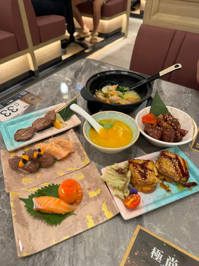 荃灣廣場6樓,呢間日式放題店新開😍環境好大好靚,全部都係卡位形式,坐得闊落又舒服👍🏻呢間新店有分A餐同B餐掃QRcode 落單,選擇好多好豐富。 除咗一般日式放題店刺身壽司之外,呢間店仲有好多獨家嘅菜式🤭味道都相當唔錯👍🏻個人大推:花膠蟹黃翅,鮑魚香菇飯,櫻桃鵝肝,蒜蓉粉絲蒸蟶子皇,全部都係貴價菜式,仲要任食真係絕對回本。睇吓隻鮑魚幾大隻,勁正:聖子皇都超惹味:D刺身都好正,全部都好厚,肥美肉滑😍仲有藍鰭吞拿魚😍真係好好味出面嘅自助區好大,仲有好多其他放題店比較少見嘅食物,有煙三文魚,乳豬,小龍蝦😂甜品區仲有部我係香港都係第一次見嘅Nutella 朱古力醬機!好受歡迎,大人小朋友都排隊等😍😂 我加左落雪糕到食🤭好好味呀埋單兩位成人每人$300左右,放題選擇咁豐富,價錢都好合理大推呢間荃灣新店👍🏻一定會再黎食🤭…查看更多