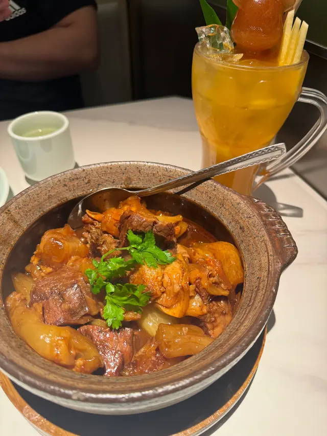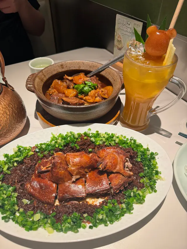 朗豪坊又開左新餐廳,成日經過都見到門口有人排隊,今日平日我都要食下,點知都一樣係咁多人等位😂 餐廳成個環境都好靚,有好多植物,坐位亦好闊落舒適餐牌係同米芝連名廚聯手合作打造的,所以係新浙菜,有啲菜式仲係香港獨有🥳我叫左2個主菜,份量都唔少,幾抵食蘿蔔燉牛筋腩:上枱非常香,每塊牛筋牛腩都好大塊,炆得好入味,肉質嫩滑👍🏻好味蔥香脆皮烤鴨:烤鴨真心推介,皮脆肉嫩🤤旁邊啲香蔥油好香好惹味,忍唔住叫多碗白飯用嚟撈飯😍爆打菠蘿茶:好大杯,茶味好香濃,但係唔會苦澀,仲有菠蘿肉嘅鮮甜,口味好清新💚最後仲叫左個甜品 西湖雷峰塔 ,造型好特別,係Q彈奶凍😉做飯後甜品一流依家仲可以用app 做會員,有迎新優惠卷🥳更加抵食👍🏻…查看更多