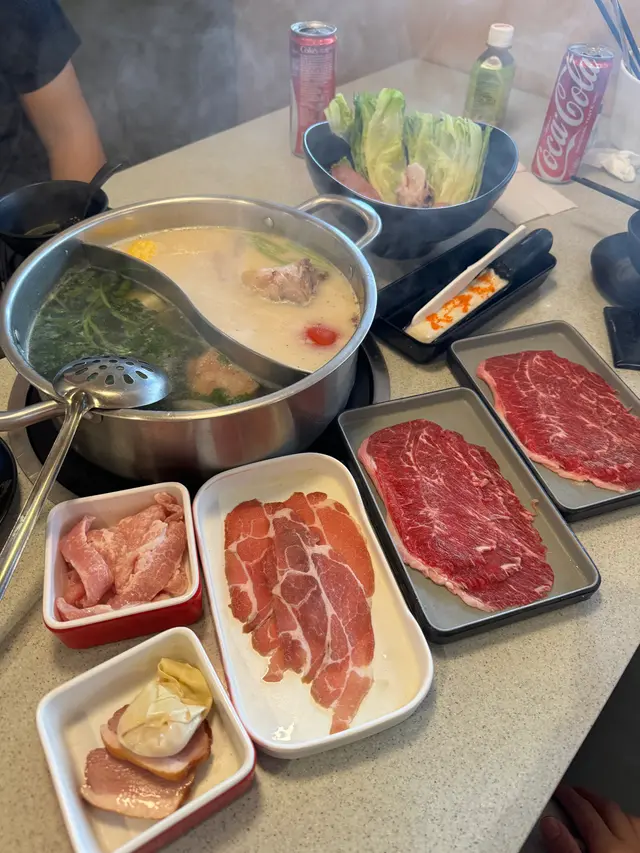 我又黎食火鍋啦😉食左咁多次,都係呢間個自助區最吸引😂自助區真係好大,今次仲多咗好幾款熟食,連小龍蝦都係任食㗎🤩炸物又多咗幾款,有炸雞鎚炸饅頭😂全部都係我鍾意食嘅坐返埋位個湯底同牛肉片已經到咗,上菜速度都幾快。牛肉片我最鍾意食安格斯牛板鍵,夠香夠滑。極黑和牛片,口感最煙韌,牛味最濃,唔會肥膩👍🏻菜單除咗各類高質肉片,仲有好多海鮮,熟食,今次我仲吃左隻乳鴿😂估唔到又幾好好食,皮脆肉嫩,即刻叫多幾隻👍🏻食完火鍋就梗係要勁食甜品😂一段時間冇嚟,無論甜品區定係雪糕都多咗好多選擇。當然唔少得任食大牌子雪糕 Hagen Dazs同埋Movenpick🤩❤️全部食👍🏻一個價錢有齊海鮮,熟食,高質火鍋同大牌子雪糕甜品,全部任飲任食,全港都冇幾多間可以咁抵😂👍🏻所以一定會再嚟食…查看更多