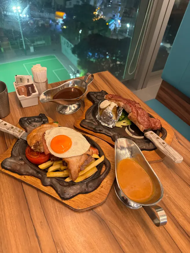 近近地係屋企附近食西餐,見到上水匯呢間餐廳有鐵板餐食,望見D扒好大塊好吸引,所以我地又入去食個晚餐。咁啱有窗邊卡位坐,有夜景睇又坐得舒服😌同老公每人叫左一份鐵板扒餐西冷牛扒:真係好大塊又厚肉,大過我手板,厚過手指,肉味濃,夠juicy 😂👍🏻我鐘意食七成熟,啱啱好唔會有血水。雜扒餐:嘩!真係好豐富,有雞翼腸仔火腿,豬扒薄牛扒⋯⋯不得了👍🏻墊底仲有薯菜🤩食曬真係好飽👍🏻😂欣賞佢哋墊底係用西蘭花❤️普通雜菜好容易霉,西蘭花就唔會👍🏻連配菜都做到唔差,真係可以全盤食曬❤️最後整返杯雪糕新地👍🏻雪糕底仲有雜果🤩真係好似細個食D 雪糕杯啊😂唔怪得個餐牌都寫住童年回憶😊埋單每人都唔使$200 ,食到咁大份鐵板餐,確實幾抵👍🏻值得食❤️…查看更多