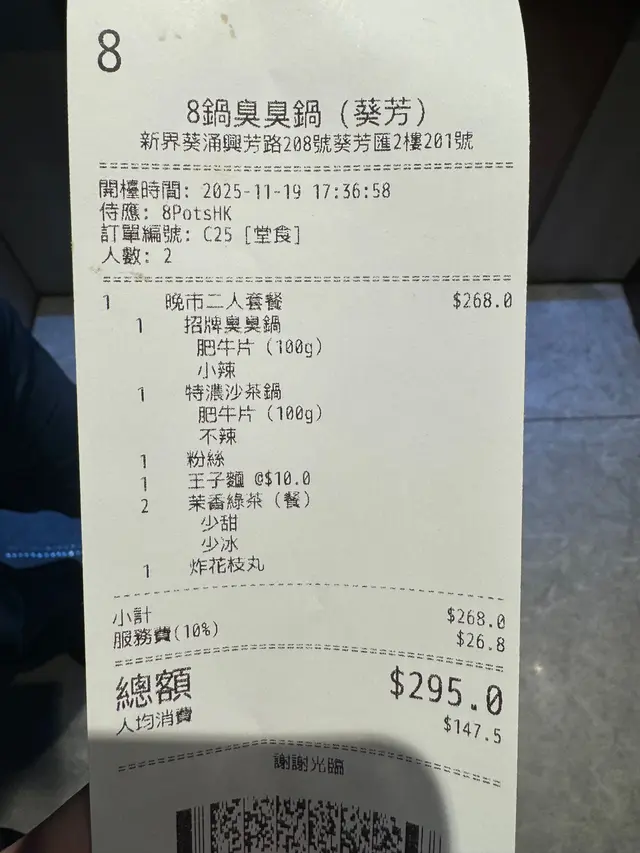 呢2日天氣凍,即刻想打邊爐。去咗葵涌廣場新對面嘅葵芳𠥔食一人一鍋嘅台式火鍋🤤,晚市個雙人套餐超抵食呀!2個人食,$300都唔駛👍🏻叫左招牌臭臭鍋同特濃沙嗲鍋,跟餐有碟肉片,可以揀豬牛羊雞,再加1份小食和兩大杯飲品,估唔到呢個價錢都可以咁豐富❤️招牌臭臭鍋,重點係塊臭豆腐「夠臭」味道夠正宗😂好正。鍋物仲好豐富,米血糕,豬大腸,麻辣鴨血,腐竹,全部料吸滿湯汁超邪惡👍🏻滿滿嘅台灣口味沙嗲鍋都好好味,沙嗲味濃郁惹味👍🏻仲可以自選辣度,仲有塊甜不辣又係吸曬湯汁,好正。跟餐肥牛片,油花算幾靚,唔會太過肥膩,大約有十塊左右,質素唔錯👍🏻2款火鍋都好惹味,材料亦十分豐富👍🏻而且仲有其他款式湯底可以選擇,口味夠大眾化。小食:炸花枝丸外皮炸得金黃酥脆,剪左炸到開花咁,好吸引🤩,口感亦好彈牙。2杯飲品,巨大杯👍🏻真係好爽😄環境乾淨坐得舒適,店員又夠nice ,2人套餐包咁多嘢,性價比超高!下次再黎食過😉…查看更多