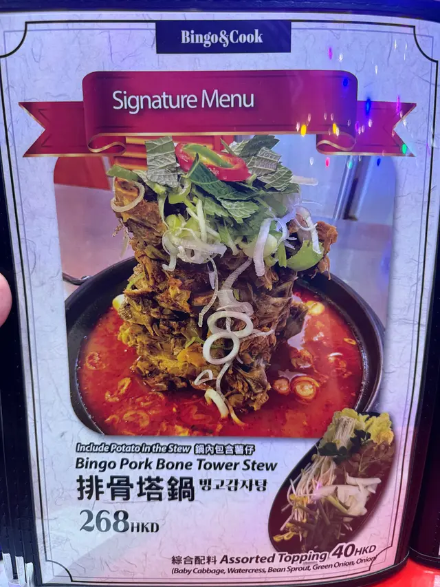 旺角朗豪坊呢間韓國菜真係打卡感十足又抵食係門口已經見到好吸引,入面裝修係韓國大排檔嘅風格😊好特別菜單仲要唔貴我見D鍋好吸引,所以我都叫咗個排骨塔鍋😍上枱超大鍋呀,店員仲會幫手將D骨剪開,方便食。排骨肉好淋滑,仲吸左D湯汁,好惹味,叫多碗飯,送飯一流❤️仲有韓餐必食嘅炸雞😊叫左半份無骨炸雞,半份都夠晒2個人食😍炸雞超香脆呀,雞皮脆卜卜,入面雞肉又有肉汁👍🏻好味又抵食仲有海鮮煎餅,滿滿嘅蔬菜一啲都唔油膩👍🏻炒牛肉配紫菜飯😂牛肉都唔會太肥膩。但係個雞蛋配韓國紫菜飯真係好好食😂估唔到😂呢間鋪真係每一份都好大碟😂好抵食。加上店舖入面嘅牆同佈置都好有韓國特色😍打卡感一流👍🏻真係好適合同朋友過嚟聚餐影相📸下次再約多啲朋友過黎食過…查看更多