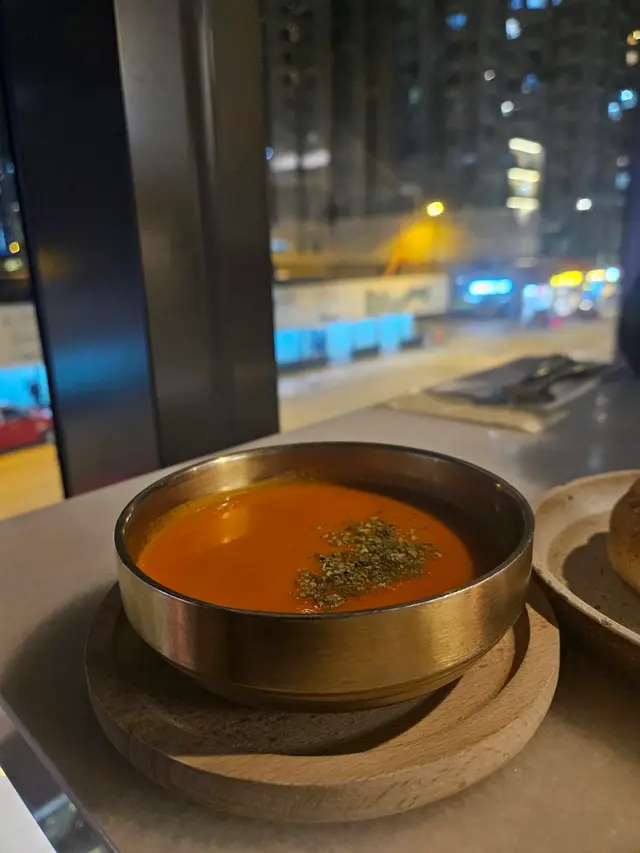 在openrice見到這間有很多like,裝修也很好,便訂了枱食晚飯試一下。晚餐有熱辣辣的小餐包,唔係揸流灘既蕃茄湯,好有特色既前菜,好好食既主菜,和唔會太甜既甜品。兩個前菜分別係海膽小飯糰,同蟹肉波波球,裝住蟹肉既波波球係脆既。主菜叫左白鱈魚同和牛扒,白鱈魚好滑,味道剛剛好。和牛好有肉汁,脂肪量剛剛好,配埋個牛肉汁更好食。廚師有料到,食材配撘好到位。甜品都好讚,唔係平時啲普通跟餐甜品咁簡單。最多,店內的服務非常好!可以再嚟。…查看更多