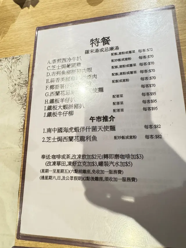 「喫茶ちょうぼ」昏黃的燈光、深木色的裝潢與復古的卡座,有一種昭和時代的日本喫茶店,氛圍感十足。「夕暮夜煙燻牛舌蛋包飯」蛋包飯的滑蛋做得相當出色,嫩滑帶有流心感,與濃郁的醬汁和米飯是絕配。當中的牛舌分量十足,燉煮得軟稔入味,但口味確實偏鹹,非常適合喜歡重口味或喜歡用來伴飯的食客。「卡邦尼意粉」醬汁creamy且蛋香濃郁,雖不及傳統意式那般鹹辣,但溫和順口的風格讓人一口接一口,麵條的軟硬度也拿捏得剛好。我們選擇了 「加$38升級套餐」 ,附上前菜及飲品,讓整個用餐體驗更為完整。前菜的沙律清新開胃,正好平衡了主菜的厚重感。「烏龍戚風蛋糕」絕對是甜品愛好者不容錯過的一環。戚風蛋糕體濕潤綿密,帶著淡雅的烏龍茶香,甜而不膩,頂層的奶油輕盈順滑,為這一餐畫上了一個完美的句號。總括而言,無論在環境、服務還是食物質素上都屬上乘,極具特色的日式喫茶氛圍讓人忘卻身處香港鬧市。雖然部分菜式口味較重,但整體體驗非常愉快。…查看更多